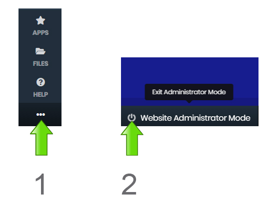 Pour sortir de votre interface administrateur et voir votre site "actif", cliquez sur les ... au bas de la marge d'administration, une barre apparaît au bas de votre écran , cliquez sur "Website Administrator Mode (Exit Administrator Mode)".