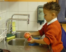 Nous lavons les pommes.