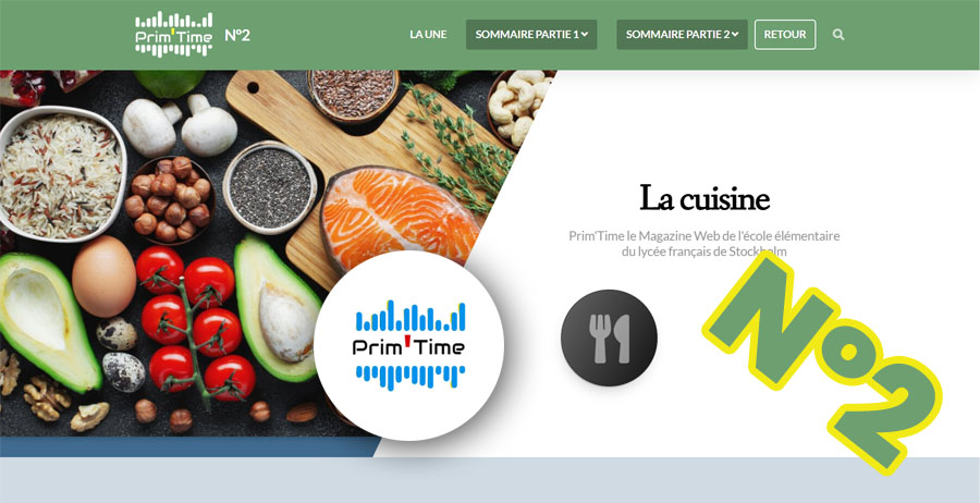 Riche en objectifs pédagogiques, le Magazine Web d'école (Prim'Time) est un projet qui réunit l'ensemble des niveaux du CP au CM2. Chaque classe dispose d'une page Internet et réalise une production en mêlant différents contenus et supports (textes, images, sons, vidéo, plateformes du web). Un comité d'élèves (élus) vote, réalise le sommaire et valide les productions qui constituent chaque édition.